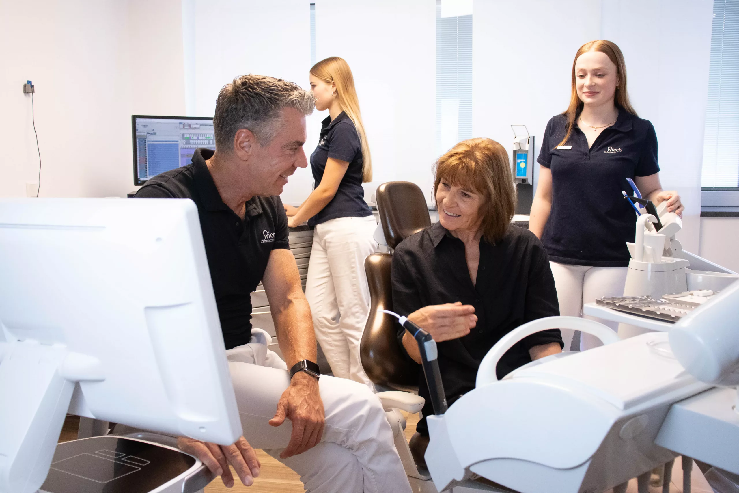 Unser Team aus engagierten Fachkräften, Zahnärzten, Zahntechnikern und Assistenzen arbeitet in einer modernen, strukturierten Praxis mit eigenem Praxislabor. Gemeinsam schaffen wir ein angenehmes und professionelles Arbeitsumfeld, in dem Freude am Beruf, Qualität und eine familiäre Atmosphäre an erster Stelle stehen.