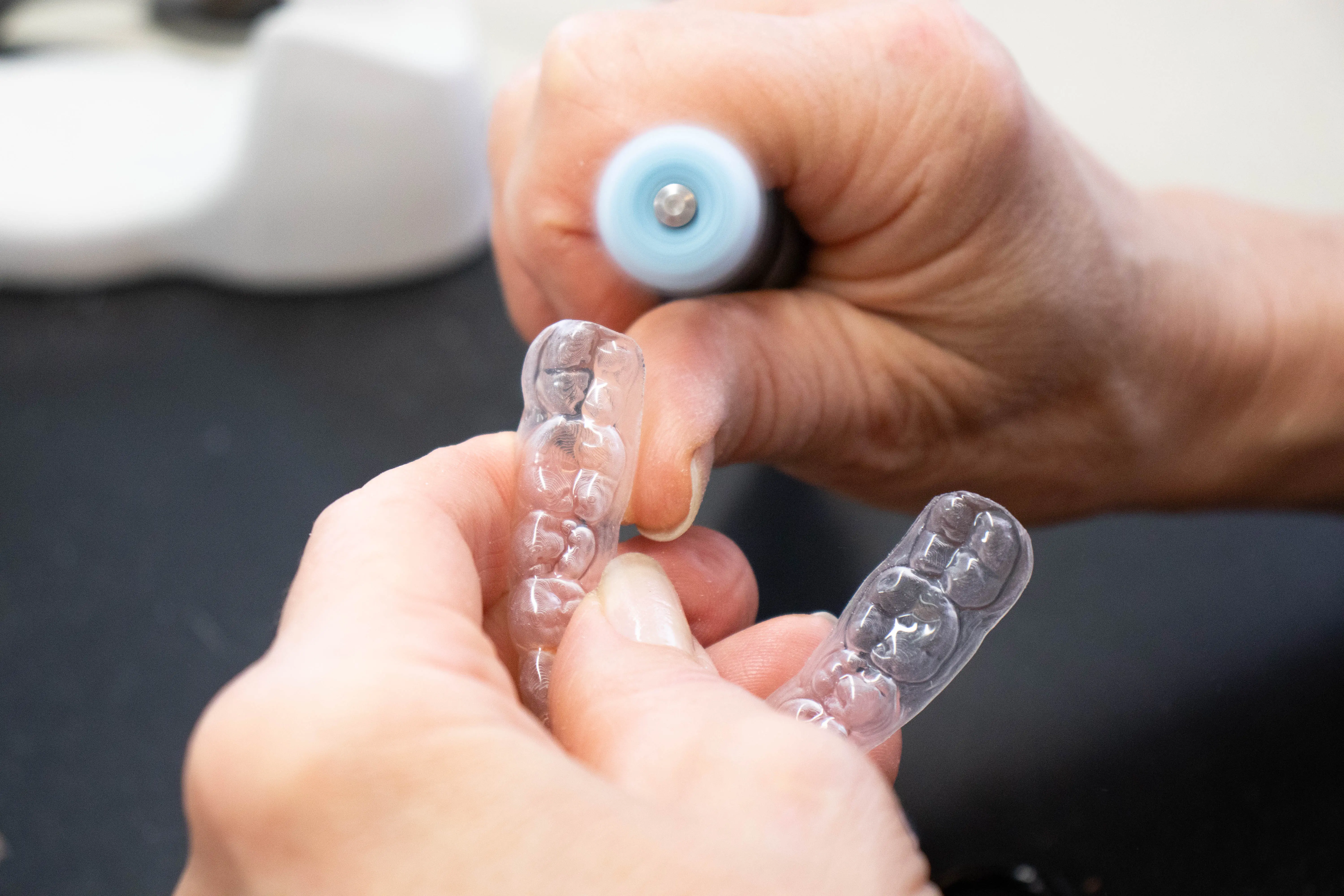 Mithilfe eines präzisen 3D-Scans und innovativer, computergestützter Technologie wird in unserem Labor ein maßgeschneiderter Behandlungsplan erstellt. Die Zahnbewegungen erfolgen schrittweise, und die Anzahl der benötigten Schienen wird individuell ermittelt.